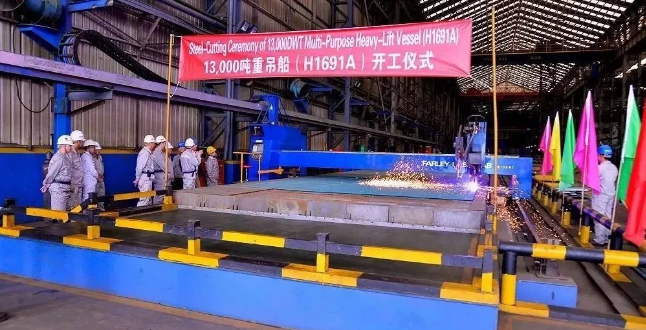 ????11月12日,沪东中华造船(集团)有限公司为中国船舶(香港)航运租赁有限公司建造的系列13000吨重吊船中的6号船开工。该船由上海船舶研究设计院设计,总长149.99米,型宽25.6米,型深13.5米,设计吃水6.8米,结构吃水8.3米,入级DNV GL。 ????沪东中华将严格按照建模2.0的要求,以“严、紧、细、实”的工作作风,强化风险管控保质量过硬,注重细节管理促效率提升,建造优质船舶。