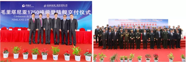 以上左图:毛里塔尼亚1750吨级登陆舰交付仪式;右图:两艘孟加拉轻型护卫舰交付仪式。