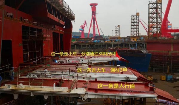 其次,大车停在3甲车库,小车停在5甲车库,可使船舶的重心会更低、整体更稳,最重要的是还考虑到港口条件进行了量身定做。