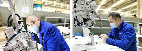 ????装配调试团队快马加鞭地开展设备总装总调,技术团队全力协同配合。48小时,2台压条机样机的装配顺利完成。按照预设的温度和速度,按下“送带、剪带”键,踩下踏板,无纺布经过滚轮,自动平整粘合……“成功了!成功了!”现场的人员欢呼起来。