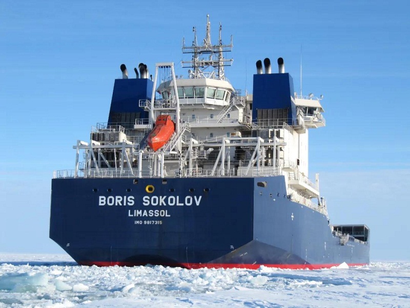 ????作为全球首艘极地凝析油船,“鲍里斯索科洛夫”号是为挑战北极地区极寒天气而生。该船按照Arc7级破冰能力设计,能在零下50℃极地条件下航行,运输凝析油,并保持2节以上的航速。这在目前世界上运营的冰区船舶中绝无仅有。