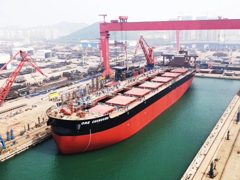 北船重工建造的32.5万吨矿砂船4号船顺利出坞