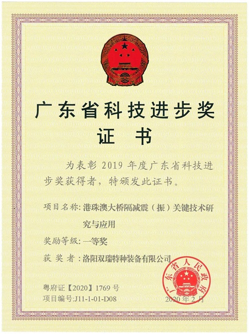 ????双瑞特装与港珠澳大桥管理局等9家单位,历时10年联合攻关,创建了超长复杂跨海桥梁减隔震新体系,成功应用于港珠澳大桥,抗震性能从抗7度提高到抗9度,造就了世界超长跨海大桥的减隔震示范工程。