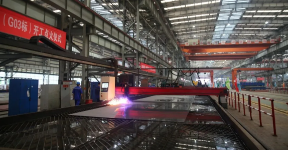 ????齿锯轰鸣,火焰飞溅。近日,武船集团承接的深圳至中山跨江通道钢箱梁制造项目正式点火开工。