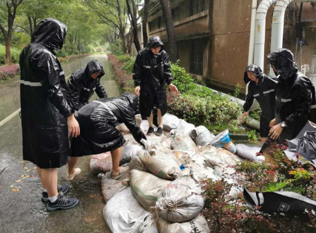七〇二所及时启动应急响应,建立各部门汛情排查报告信息网络,安排现场值守巡查工作;紧急组建应急救援队,冒着大雨开展全所巡查,查隐患、堵漏洞、搬沙袋、疏管网;积极落实防汛措施,及时关注所办大楼、地下车库等重点区域汛情,安排物业、水站、电站人员进行24小时轮值,全力保障沙袋、抽水泵等防汛物资储备,以及食堂的食材供应,做好雨后消毒工作。