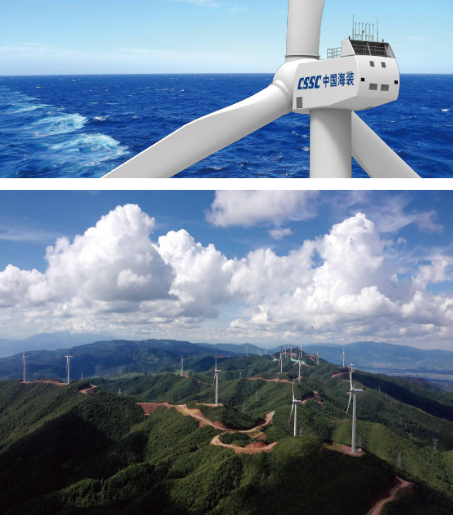 中国船舶集团拥有国内实力强劲的自主研发与生产体系,具备强大的机、电、液、控一体化装备制造服务保障能力,形成了从叶片、齿轮箱、发电机、控制系统到机座、机架、塔筒、轮毂等全系列制造能力,从资源开发、零部件制造、整机研发、工程安装、运维服务等全产业链保障能力,是我国唯一具备较完整风电装备研制生产服务保障体系的专业化集团。