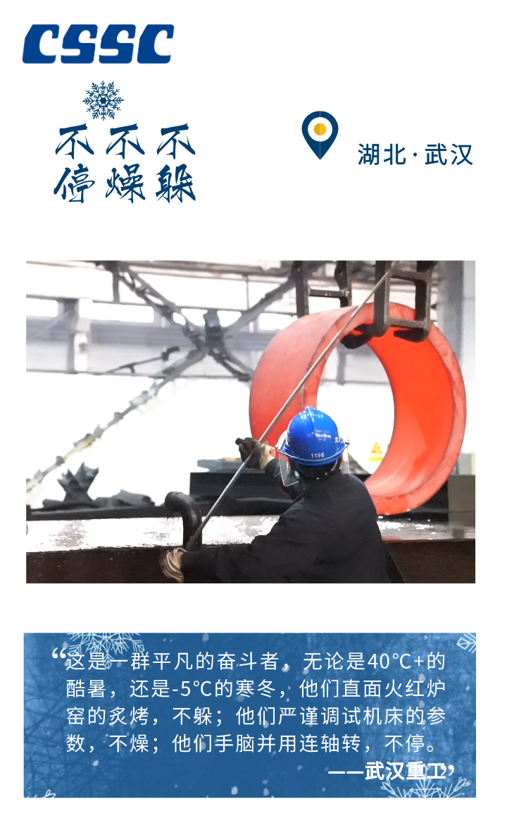 -5℃、-10℃、-20℃ …… 在这个不断刷新寒冷指数的冬季 从未缺席中国船舶人劳作的身影 皎洁的白雪、火红的炉膛 呼啸的海风、疾行的足音 奏响了冬季船舶人的 冰与火之歌