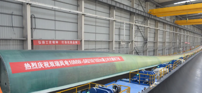 双瑞风电10MW-SR210叶片是海上风电高度定制化产品,在设计过程中紧密结合整机开展一体化设计,兼顾叶片轻量化、机组载荷最小化,实现与机组最佳匹配,极大提高10MW风力发电机组经济性和竞争力。