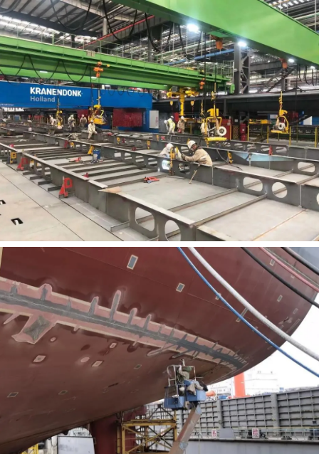 安环保卫部安保消员工坚守岗位,保障大型邮轮作业安全;集配部码头钢板抓紧卸货,全力保障生产;制造二部400余名员工投入大型邮轮薄板分段建造;涂装部800余名员工对大型邮轮/民船关键项目进行涂装;搭载部1300余名员工坚守岗位保证船坞节点;总装一部400余人围绕止链器/舱口围导轨安装等开展生产,总装二部对大型邮轮总段扣压管穿舱件进行焊接;生产保障部开展大型邮轮临时电力系统新式电箱改造。
