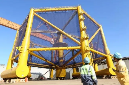 2017年,中国船舶集团旗下武船集团为挪威打造的世界首座现代化、全自动、半潜式三文鱼深海养殖装备——“海洋渔场1号”交付。一个养殖季,可实现养鱼150万条,产量约8000吨。