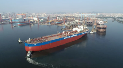 日前,中国船舶集团旗下大船集团生产捷报频传,实现一船命名、一船出坞。30.7万吨超大型油船(VLCC)“中船湖南”号命名,全球首艘双燃料超大型油船出坞。