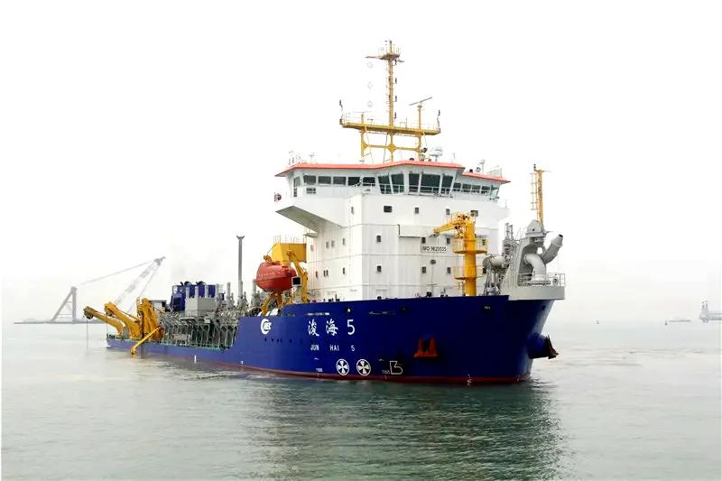 E32的沉放安装,还动用了万方耙吸式挖泥船“浚海5”、供料锁固船、管节沉放吊舶及测量控制塔等关键设备。