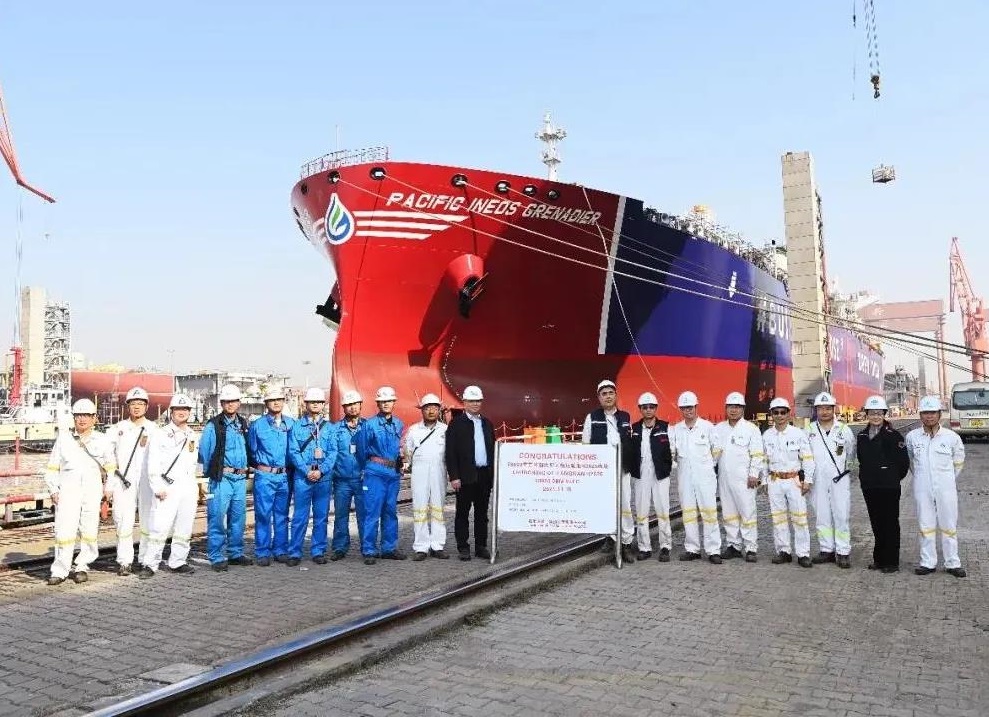 对比首制船,该艘船坞内周期缩短了30%,为后期按时出坞,争取了有利条件。该船未来投入航运市场,将成为目前世界上最大的运输乙烷/乙烯运输船。