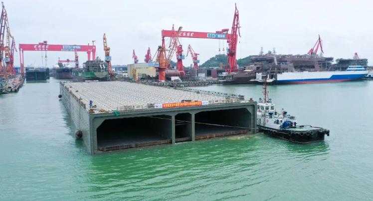 这是中国船舶集团旗下广船国际35天完成制造、今天交付出坞的深中通道海底隧道沉管E24管节钢壳!