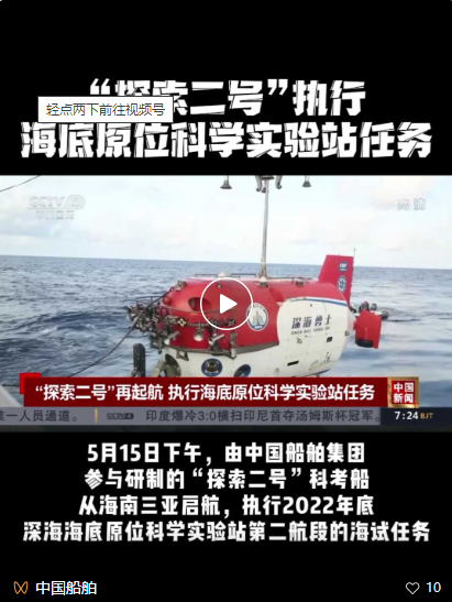 5月15日下午,我国“探索二号”科考船从海南三亚启航,执行2022年度深海海底原位科学实验站第二航段的海试任务。