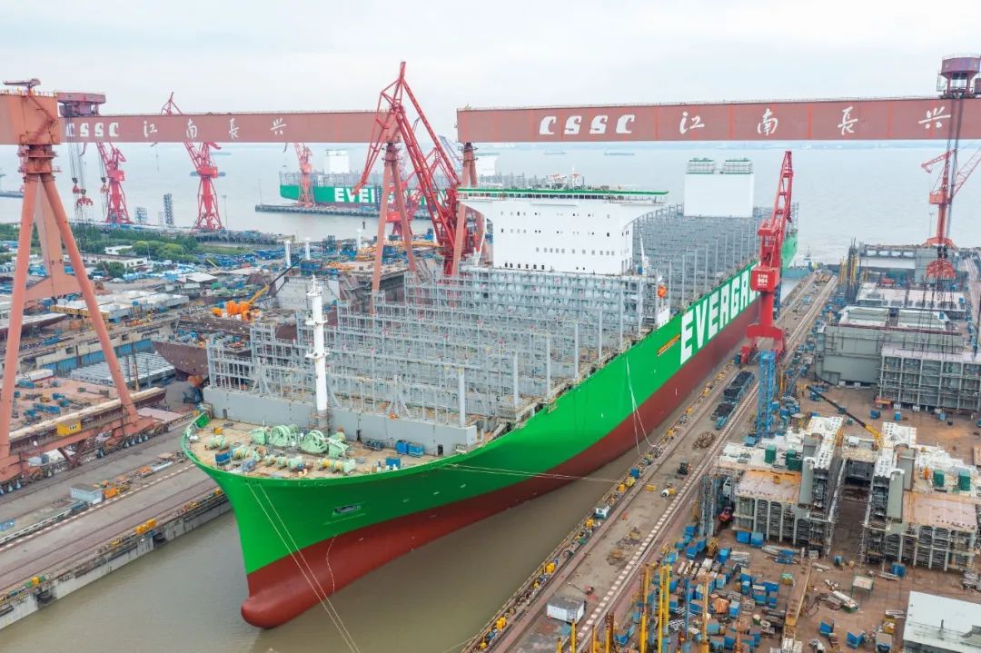 5月19日,中国船舶集团旗下沪东中华双喜临门。其建造的全球最大装箱量24000TEU超大型集装箱船2号船在长兴造船基地顺利出坞;建造的13000吨多用途重吊船12号船在浦东厂区命名交付,标志着该项目圆满收官。这是沪东中华自复工复产以来首次实现一天完成两大生产节点。