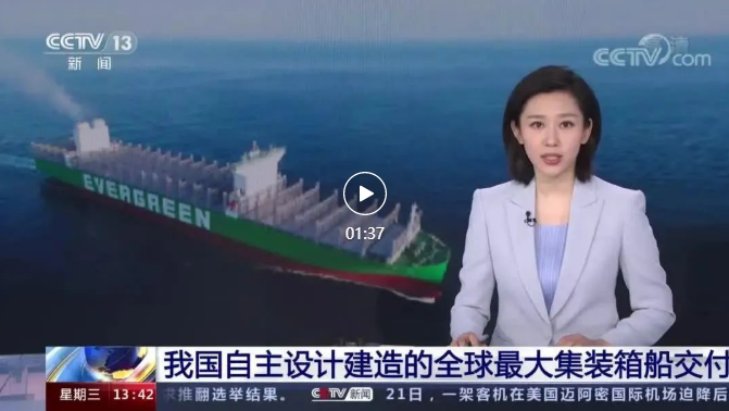 今天,中国首艘全球最大24000TEU超大型集装箱船在中国船舶集团旗下沪东中华签字交付,比最大航母还长,甲板面积相当于3.5个标准足球场,最大堆箱层数可达25层,相当于22楼的高度……