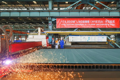 在喜迎党的二十大之际,中国船舶集团旗下沪东中华生产捷报频传。10月14日,沪东中华为中国石油国际事业有限公司建造的17.4万立方米大型液化天然气(LNG)运输船、为法国达飞海运集团建造的全球首批1.3万TEU液化天然气(LNG)双燃料动力超大型集装箱船同日开工,还有一艘为上海申能集团建造的8万立方米LNG船主船体实现结构成型。至此,在短短的一周时间里,沪东中华共实现了一船出坞、一船入坞、一船完成试航、一船主船体实现结构成型、两船开工等六大生产节点,建造能级和效率不断提升,掀起了“奋战第四季度、勇夺全年目标”的生产经营新高潮。