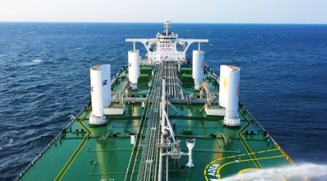 大连造船联合中船贸易建造的30万吨VLCC “新伊敦”轮正式命名交付。该船安装了两对新一代大型硬质翼型风帆,总体技术经济指标、排放指标处于世界领先水平。