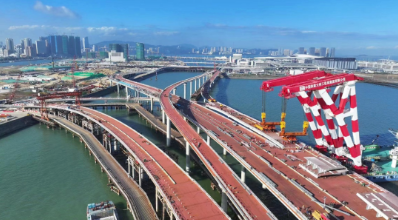 12月15日,随着最后一节段钢梁精准对位至CP8~CP9墩顶支座上,澳氹第四条跨海大桥72节段钢梁吊装任务全部完成大桥引桥和匝道实现全部合拢。