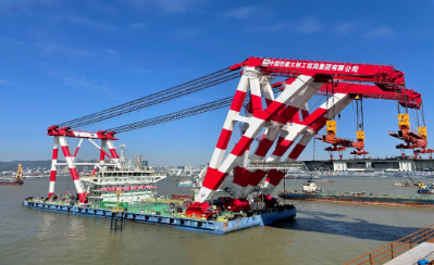 澳氹第四条跨海大桥钢梁吊装任务由“铁建大桥起1”号起重船完成。该船由中国船舶集团七〇八所研发设计,一期“L”型起重臂架为澳氹四桥工程专属设计和打造,具有完全自主知识产权。