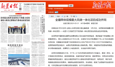 近日,中国船舶集团旗下中船科技子公司中船风电和哈密国投联合开发的新疆哈密百万千瓦风储一体化项目首台风机成功并网发电,央视《新闻联播》、新华网和《新疆日报》等纷纷关注报道。