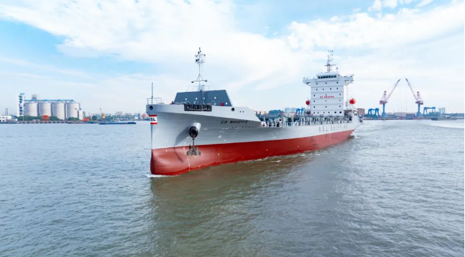 近日,由上船院设计,武昌造船为CA SHIPPING建造的1100TEU集装箱船3号船提前交付。