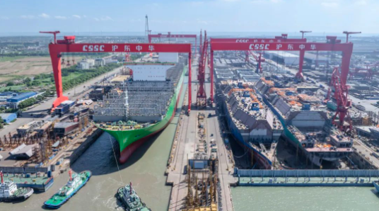 近日,24000TEU系列集装箱船(H1873A)在中国船舶集团旗下沪东中华长兴岛西部厂区1号船坞提前11天出坞。在建造团队努力下,该船出坞完整性达到系列船最佳,为缩短码头建造周期创造有利条件。