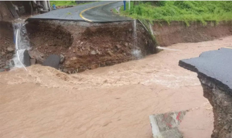 受近日强降雨影响,湖南省怀化市沅陵县官庄镇一处道路桥梁损毁。