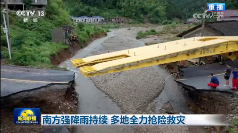 6月22日,国家区域性公路交通应急装备物资湖南(娄底)储备中心派出中国船舶集团旗下中船应急生产制造的26米应急机械化桥赶赴现场救援。