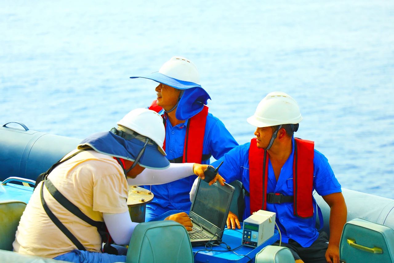 七〇二所——水池模型内部,科研人员正忍受着近55℃高温,开展试验前的设备安装和调试工作。