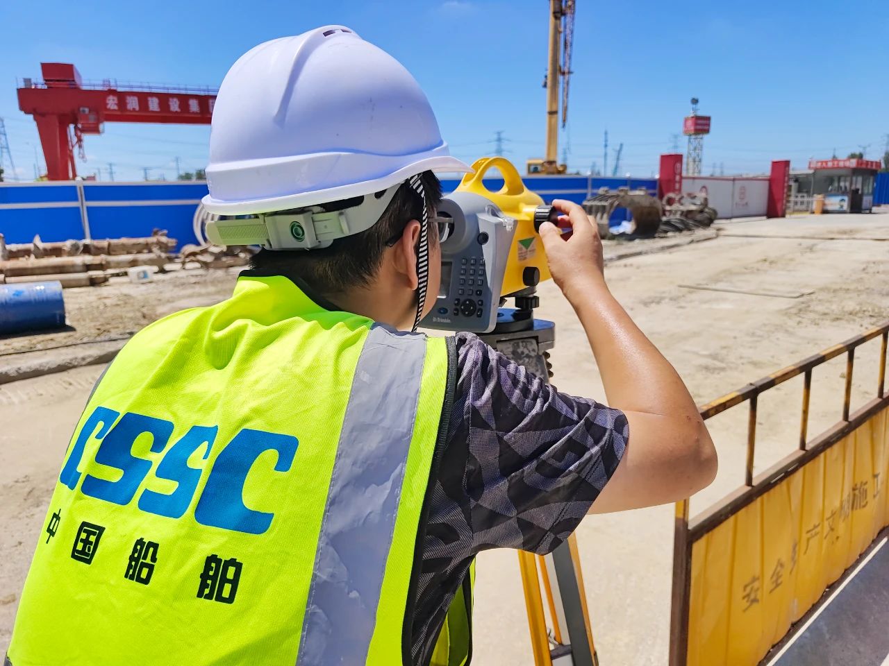 中船九院——子公司中船勘院崇明线轴线复测1标项目部顶着烈日进行复测。
