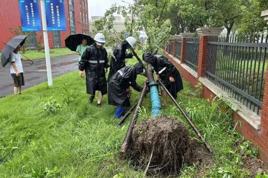 中船九院组织华船物业针对办公大楼每个楼层门窗关闭情况进行“地毯式”检查,对重点区域进行加固,安排人员巡查,落实办公楼区域应急值班人员24小时待命。台风来袭期间,中船九院针对受大风大雨影响的重点部位再组织有效加固。