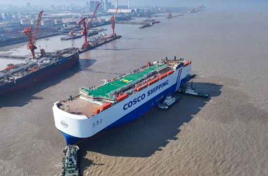 12月2日,外高桥造船1号船坞迎来8600车液化天然气(LNG)双燃料动力汽车运输船(PCTC)和11.4万吨阿芙拉型成品油轮的同日出坞,不仅达成首制PCTC船坞周期100天既定目标,在民船建造领域继续保持“加速度”,而且也标志着该公司新船型和常规船型同坞同节拍生产取得新突破。
