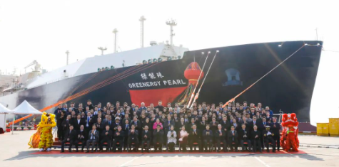 12月18日上午,中国船舶集团旗下沪东中华自主设计、建造的17.4万立方米大型液化天然气(LNG)运输船“绿能珠”号,提前8个月在上海长兴岛命名交付。中国船舶集团党组成员、总会计师贾海英,中国海洋石油集团有限公司党组成员、副总经理阎洪涛出席仪式并致辞。
