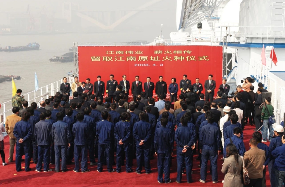 2008年4月,江南造船老厂建造的最后一艘船“远望6”号航天测量船即将交付。4月3日,时任江南造船搭载部部长黄文飞作为取火者从“远望6”号船前甲板的上建位置手拿焊枪取火引燃火炬。火炬依次传递至劳动模范、三八红旗手、江南造船领导等,最后传至时任中船集团总经理陈小津手中并由他点燃了火种盒。6月3日,江南造船人亲手建造的船舶特地赶回“娘家”,载着江南“火种”驶往新基地,为新建造的产品开工点火。