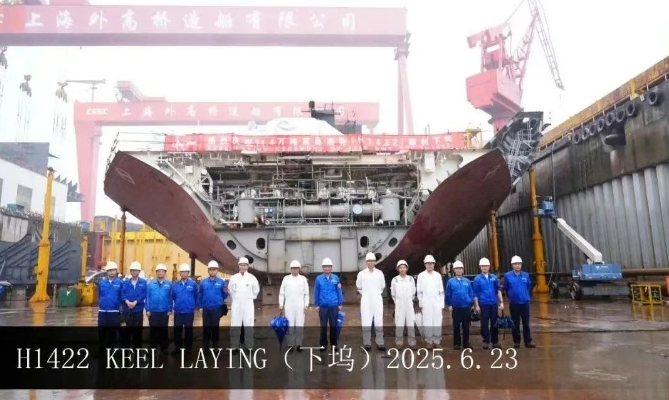 6月23日,外高桥造船建造的11.4万吨阿芙拉型成品油船H1422船顺利下坞。