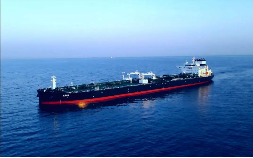 日前,中船集团旗下大连造船所属山船重工为希腊船东Dynacom Tankers Management Ltd.建造的11.5万吨成品油船“KOS”号交付,这是山船重工今年上半年累计交付的第10艘船舶,标志其圆满完成“双过半”任务。
