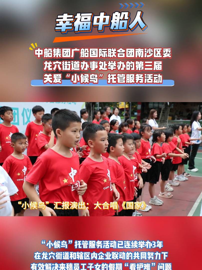 广船国际“小候鸟”托管服务活动已连续举办3年,切实有效解决了来穗员工子女的假期“看护难”问题,提高员工扎根南沙、逐梦南沙的归属感与幸福感,是广船国际聚焦“幸福中船人”目标的生动实践、“我为群众办实事”及“六船同心”党建品牌“民生号”建设的重要内容。