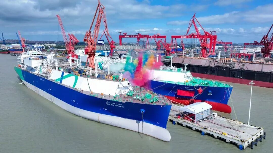 10月17日,中国船舶集团有限公司旗下沪东中华为卡塔尔能源项目建造的17.4万立方米液化天然气(LNG)运输船“米赫泽姆”号和“东沙尼”号同日命名。这标志该公司深入贯彻落实中船集团“冲刺四季度”工作取得重要成果,在一周内完成2船交付、2船命名、3船出坞、3船入坞,交出LNG运输船产能倍增优异答卷。