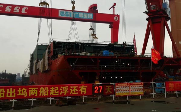????对于如此重要的设备,广船国际总装部甲装二课,从3月2日起开始对这3块跳板进行装焊,经过3天2夜的奋战全部装焊完成!