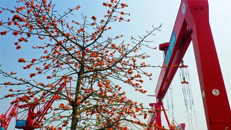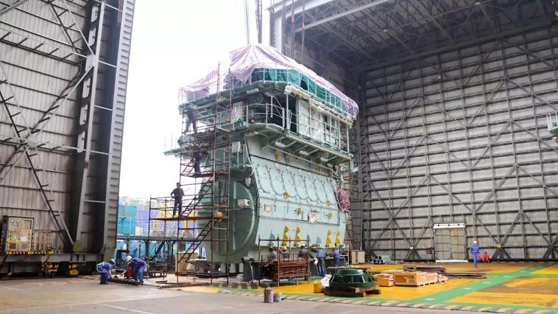 震撼延时带你看四层楼高船舶主机吊装全过程