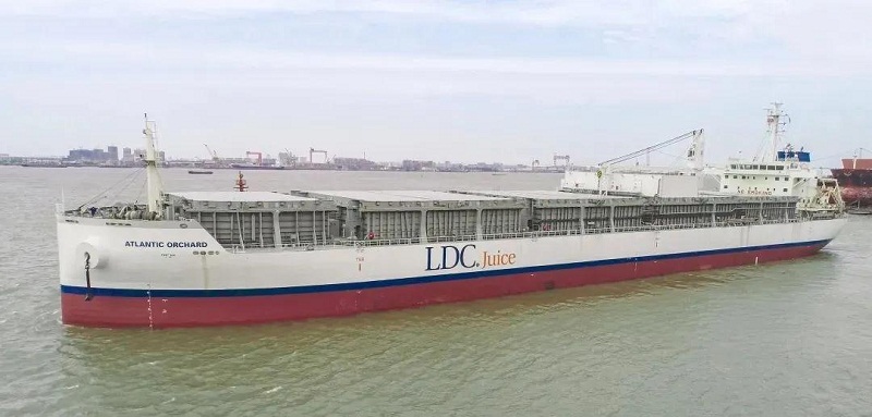 ????该船可以装载19500立方米橙汁,大约重2万吨,按照和水一样的密度粗略计算,以装满500毫升一瓶为基准,该船满载可装4000万瓶500毫升的橙汁,装载运输能力超强大!这艘船就好比一个海上移动的“大冰柜”,15个液货罐均采用食品级绝缘不锈钢材料,可装载零摄氏度橙汁和零下10摄氏度浓缩橙汁,液货舱始终保持低温状态,确保不受细菌污染。