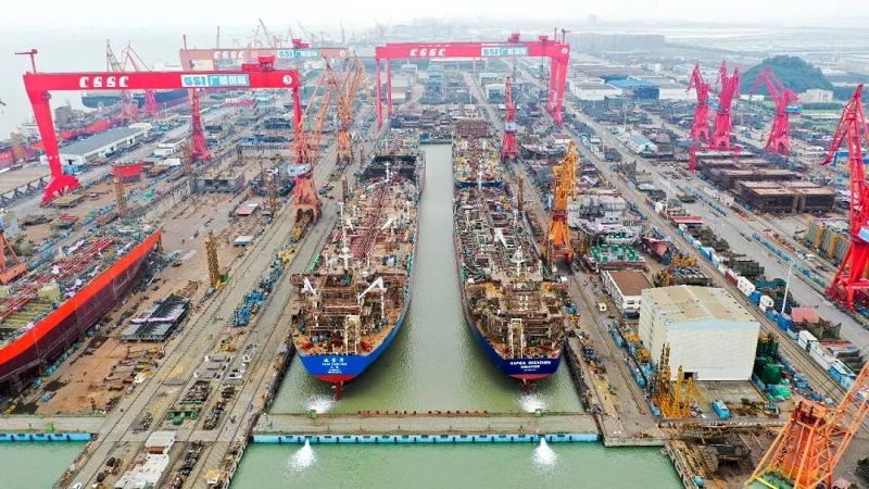 1船命名交付、3船出坞、2船进坞,6艘船6个重大节点,每个都完成得又快又好。这,就是中国船舶人的速度!