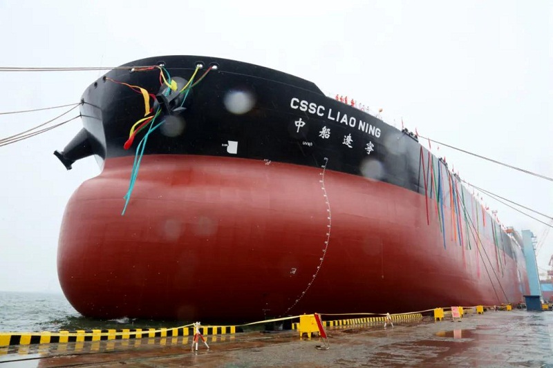 ????今天,中国船舶集团旗下大船集团为中船贸易所属租赁公司建造的30.8万吨超大型原油船“中船遼寧”号命名交付。“中船遼寧”号是大船集团自主开发的新一代极具市场竞争力的品牌船型。该船总长332.95米,型宽60米,最大载重量30.8万吨,属于无限航区船型,续航里程超过25000海里,在设计吃水20.5米可正常装载200万桶原油通过马六甲海峡。