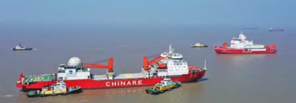 “雪龙2”号是我国首艘自主建造的极地科学考察破冰船,由中国船舶集团旗下七〇八所设计、江南造船建造,于2019年7月11日正式交付,总长122.5米,设计排水量接近14000吨,是一艘满足无限航区要求、具备全球航行能力,能够在极区大洋安全航行的具备国际先进水平的极地科学考察破冰船。