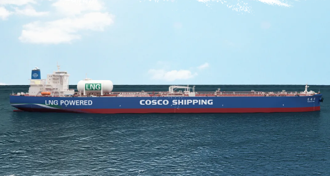 5月28日,中国船舶集团旗下大船集团为中远海运集团建造的全球首制双燃料超大型原油船(VLCC) 液化天然气(LNG)燃料储舱——2x3500m3C型LNG低温储舱成功交付。
