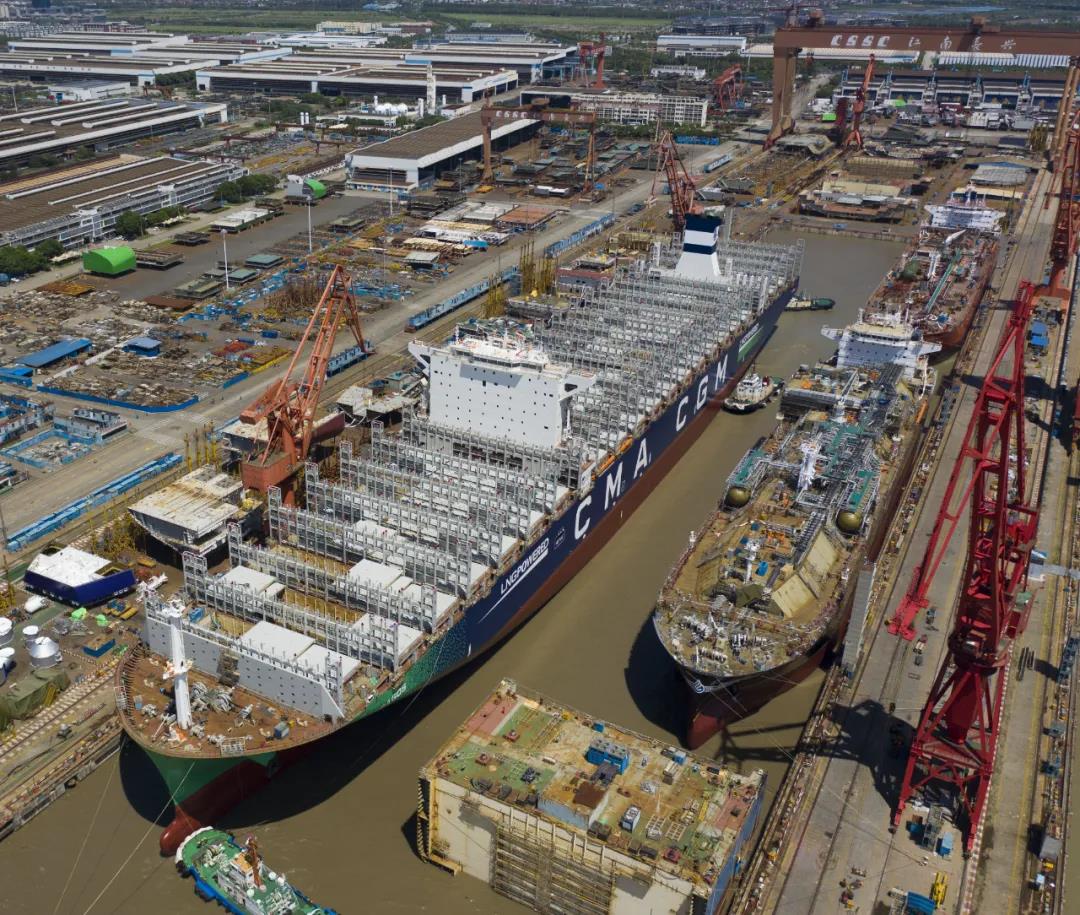 此次共有1艘15000TEU双燃料集装箱船、1艘86000立方米超大型双燃料液化气船、1艘98000立方米超大型液化乙烷运输船等3型号共计3艘整船出坞,同时还有2型2艘半船同批次起浮。
