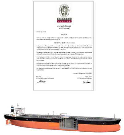 5月5日,中国船舶集团旗下外高桥造船同法国GTT公司、法国船级社(BV)联合研发的30万吨双燃料超大型原油船获得BV船级社的原则性认可(AIP)证书。