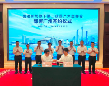 7月23日,中国船舶集团有限公司旗下中船邮轮科技管理有限公司所属爱达邮轮有限公司与广州南沙国际邮轮母港运营管理有限公司在广州签署合作协议,共同宣布第二艘国产大型邮轮将主要依托广州母港运营,全面布局华南市场,进一步推动广州邮轮全产业链生态体系建设,探索打造邮轮经济与文商旅融合发展的创新样板。中国船舶集团党组成员、副总经理盛纪纲出席签约仪式。